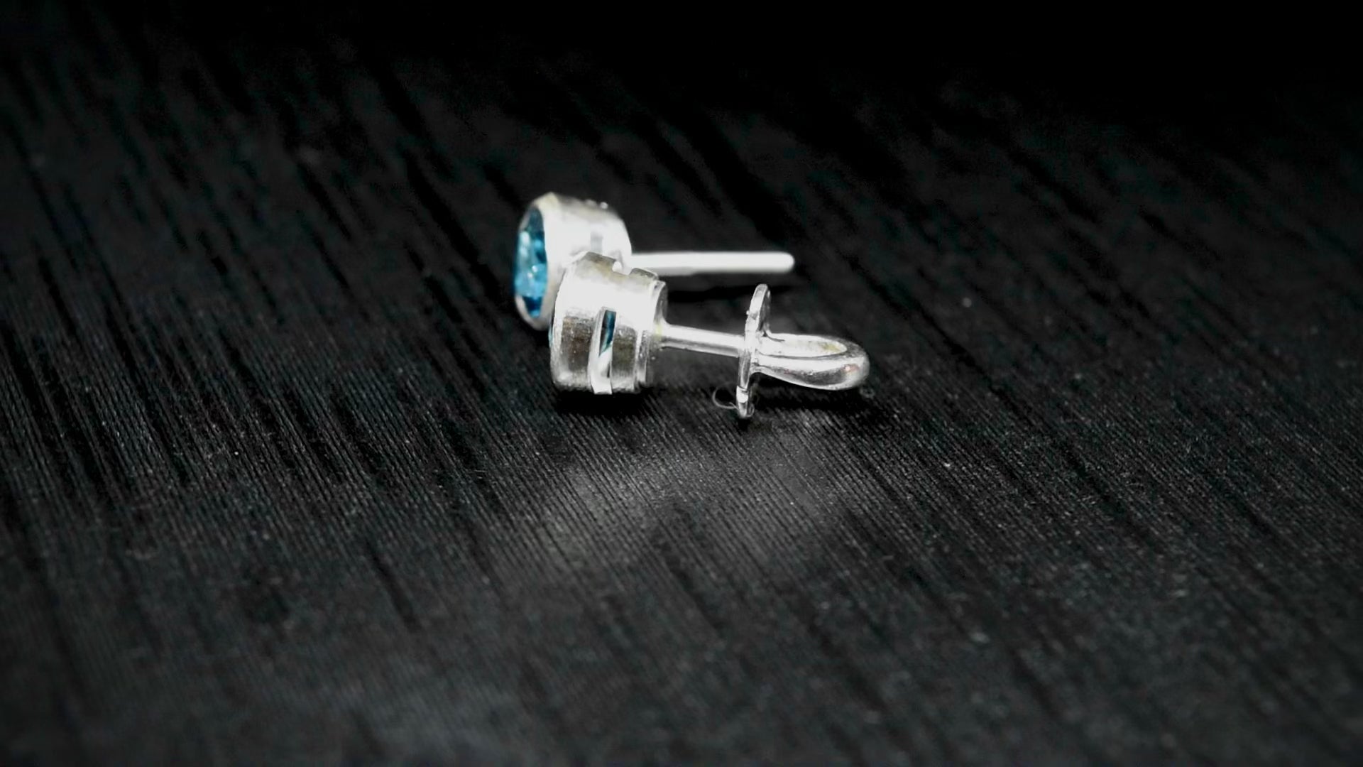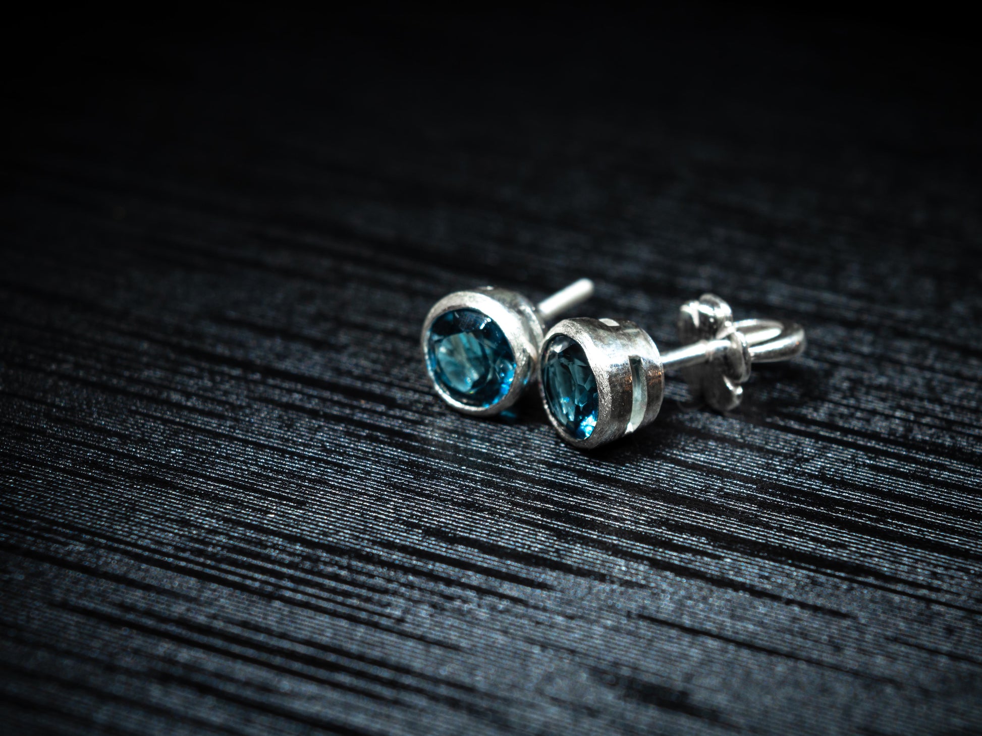 Screw back stud earrings are made in sterling silver with London Blue Topaz.